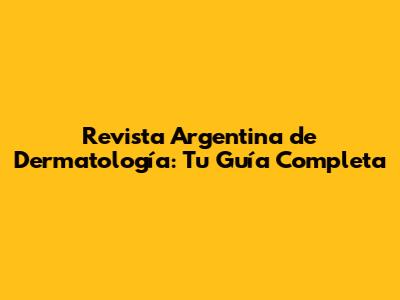 Revista Argentina De Dermatología: Tu Guía Completa