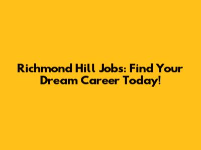 Richmond Hill Jobs: Find Your Dream Career Today!