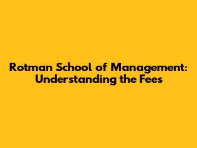 Rotman School Of Management: Understanding The Fees