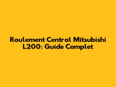 Roulement Central Mitsubishi L200: Guide Complet