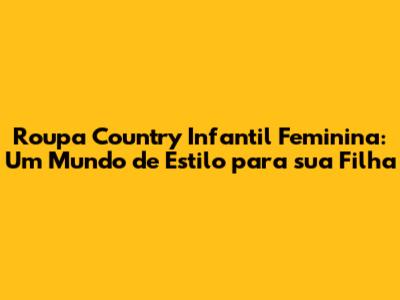 Olá, pessoal! Se você está aqui, provavelmente está procurando o visual country perfeito para sua pequena cowgirl. E acertou em cheio! A moda country infantil feminina é um universo de charme, conforto e, claro, muita atitude. Neste guia completo, vamos explorar todos os detalhes sobre a roupa country infantil feminina, desde as peças essenciais até dicas de como montar looks incríveis para sua filha. Prepare-se para se apaixonar por cada detalhe!
