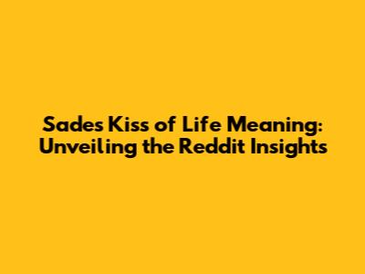 Sade's 'Kiss Of Life' Meaning: Unveiling The Reddit Insights