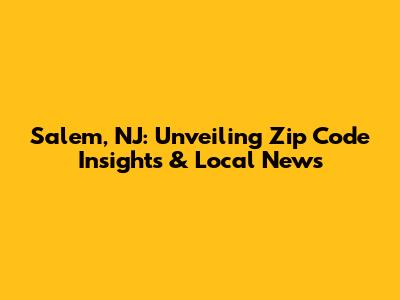 Salem, NJ: Unveiling Zip Code Insights & Local News