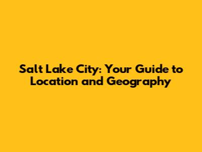 Salt Lake City: Your Guide To Location And Geography