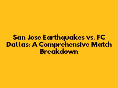 San Jose Earthquakes Vs FC Dallas: Match Analysis