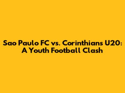 Sao Paulo FC Vs. Corinthians U20: A Youth Football Clash