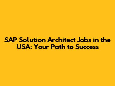 SAP Solution Architect Jobs In The USA: Your Path To Success