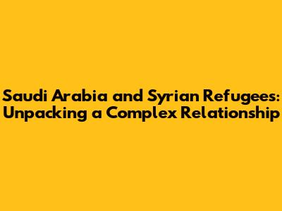 Saudi Arabia & Syrian Refugees: A Complex Story