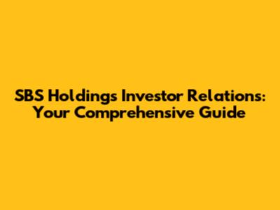 SBS Holdings: Your Guide To Investor Relations