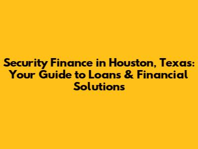 Security Finance Houston TX: Loans & Financial Solutions