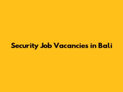 Security Job Vacancies In Bali