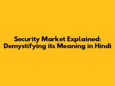 Understanding the Foundation: Security Market Meaning in Hindi