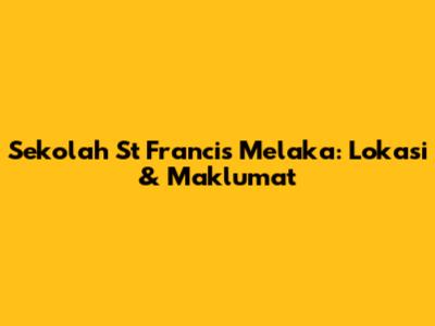 Hey guys, nak cari tahu pasal Sekolah St Francis Melaka? Korang dah sampai kat tempat yang betul! Artikel ni akan bongkar semua info penting yang korang perlukan, dari alamat sampailah ke apa yang best sangat kat sekolah ni. St Francis ni bukan calang-calang sekolah, tau. Ia ada sejarah yang panjang dan reputasi yang mantap dalam arena pendidikan di Melaka. Kalau korang tengah survey sekolah untuk anak-anak, atau mungkin korang bekas pelajar yang rindu nak imbau kenangan, jom kita selami lebih dalam tentang sekolah kebangsaan ini. Kita akan cover semua benda, daripada cara nak sampai ke sana, kemudahan yang ada, sampai la ke aktiviti-aktiviti menarik yang dijalankan. Jadi, pastikan korang stay tuned sampai habis ya!