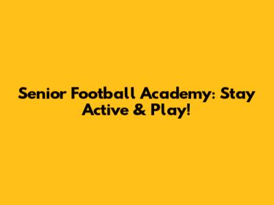 Senior Football Academy: Stay Active & Play!