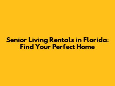 Senior Living Rentals In Florida: Find Your Perfect Home