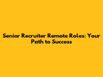 Senior Recruiter Remote Roles: Your Path To Success
