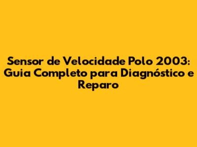 Sensor De Velocidade Polo 2003: Guia Completo Para Diagnóstico E Reparo