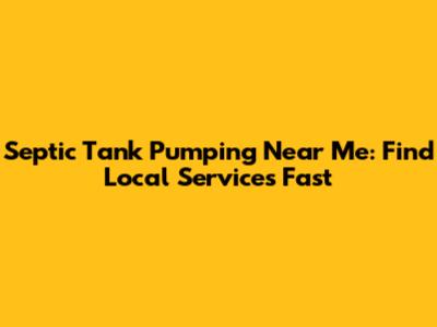 Septic Tank Pumping Near Me: Find Local Services Fast