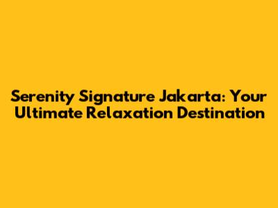 Serenity Signature Jakarta: Your Guide To Relaxation