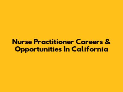 Nurse Practitioner Careers & Opportunities In California