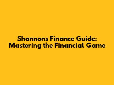 Shannon's Finance Guide: Mastering The Financial Game
