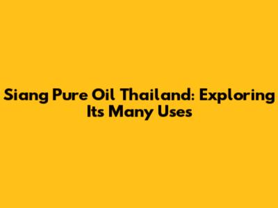 Siang Pure Oil Thailand: Benefits And Uses