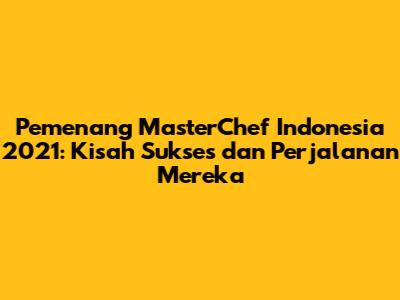 Pemenang MasterChef Indonesia 2021 adalah sosok yang telah menginspirasi banyak orang dengan kemampuan memasak dan semangat juangnya. Tapi, siapa sih sebenarnya mereka? Kita akan mulai dengan mengenal lebih dekat para juara ini. Kita akan melihat bagaimana mereka memulai perjalanan mereka di dunia kuliner, apa yang membuat mereka berbeda, dan bagaimana mereka bisa memenangkan hati para juri.