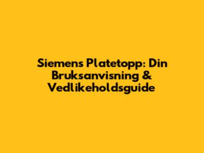 Siemens Platetopp: Din Bruksanvisning & Vedlikeholdsguide