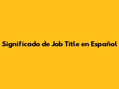 Significado De Job Title En Español