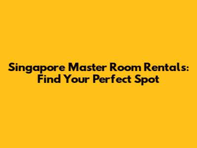 Singapore Master Room Rentals: Find Your Perfect Spot