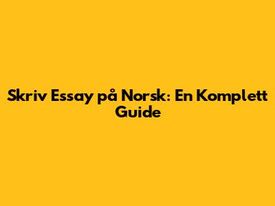 Skriv Essay På Norsk: En Komplett Guide
