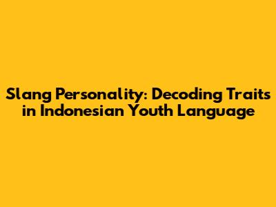 Slang Personality: Decoding Traits In Indonesian Youth Language