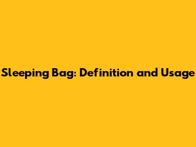 Sleeping Bag: Definition And Usage
