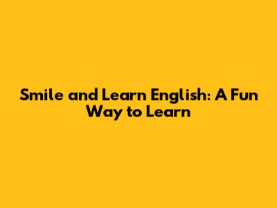 Smile And Learn English: Fun Way To Learn