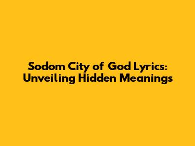 Sodom City Of God Lyrics: Unveiling Hidden Meanings