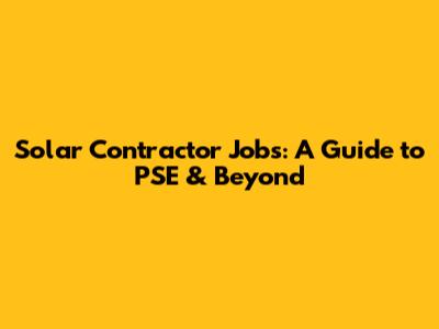 Solar Contractor Jobs: A Guide To PSE & Beyond