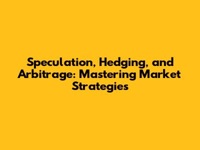 Speculation, Hedging, And Arbitrage: Mastering Market Strategies