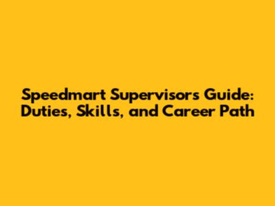 Speedmart Supervisor's Guide: Duties, Skills, And Career Path