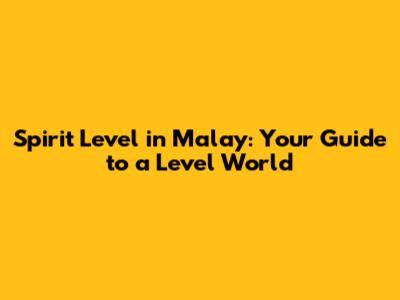 Spirit Level In Malay: Your Guide To A Level World