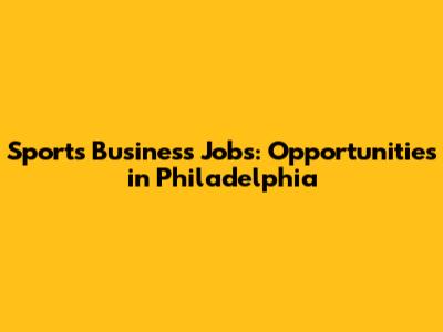 Sports Business Jobs: Opportunities In Philadelphia