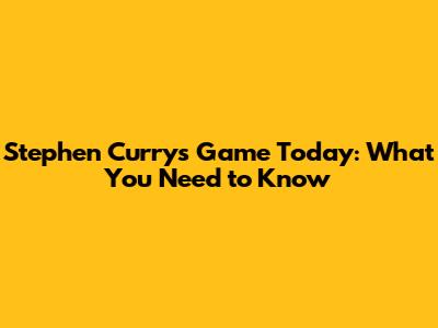 Stephen Curry's Game Today: What You Need To Know