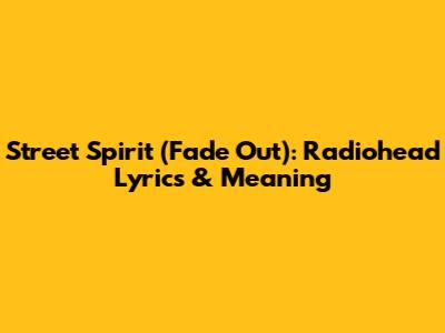 Street Spirit (Fade Out): Radiohead Lyrics & Meaning