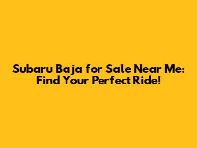 Subaru Baja For Sale Near Me: Find Your Perfect Ride!