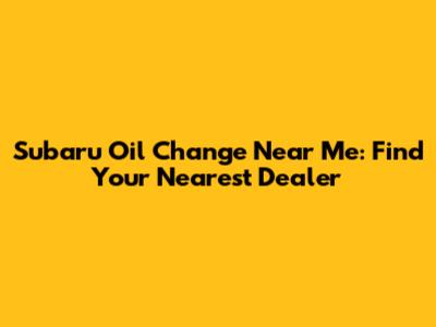 Finding a "Subaru dealer near me" for an oil change doesn't have to be a chore. By using the resources and tips outlined in this article, you can easily locate a reputable dealer, schedule your appointment, and save money on your service. Remember, regular oil changes are crucial for maintaining your Subaru's performance and longevity, so don't neglect this essential maintenance task. Keep your Subaru running like a dream by entrusting it to the experts at your local Subaru dealership!