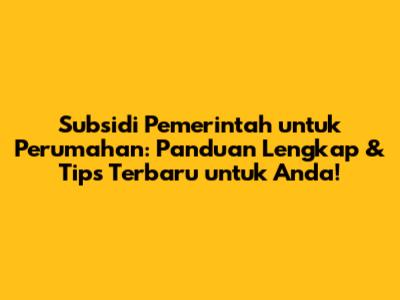 Subsidi Rumah: Panduan Lengkap & Tips Terbaru Untuk Anda!