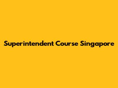 Top Superintendent Courses in Singapore