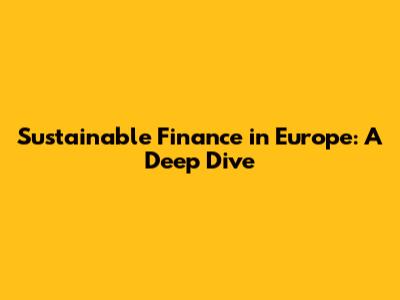 Sustainable Finance In Europe: A Deep Dive