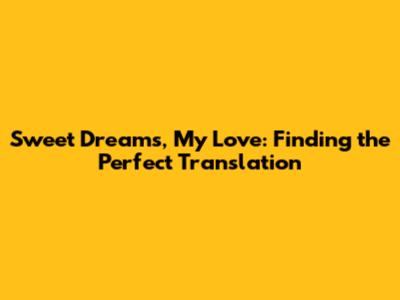 Sweet Dreams, My Love: Finding The Perfect Translation