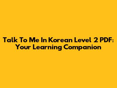 Talk To Me In Korean Level 2 PDF: Your Learning Companion