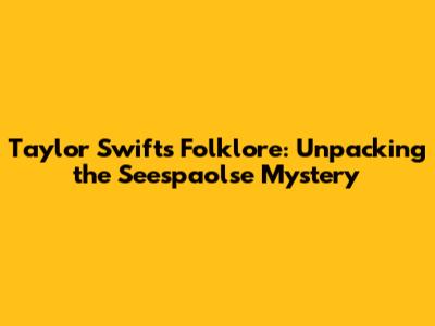 Taylor Swift's Folklore: Unpacking The Seespaolse Mystery